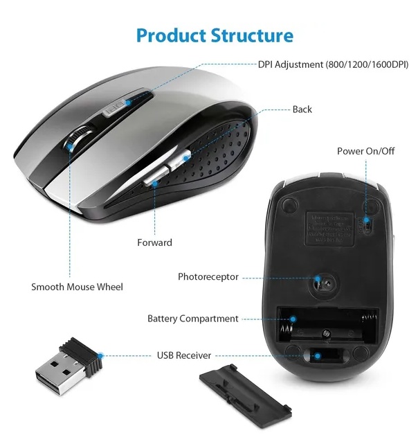 *3 Adjustable DPI & 6 Buttons: Features 3 adjustable DPI(800/1200/1600) and 6 buttons; which is different from common mouse and meet your different demands; whether used for daily work; game playing or as a designer.